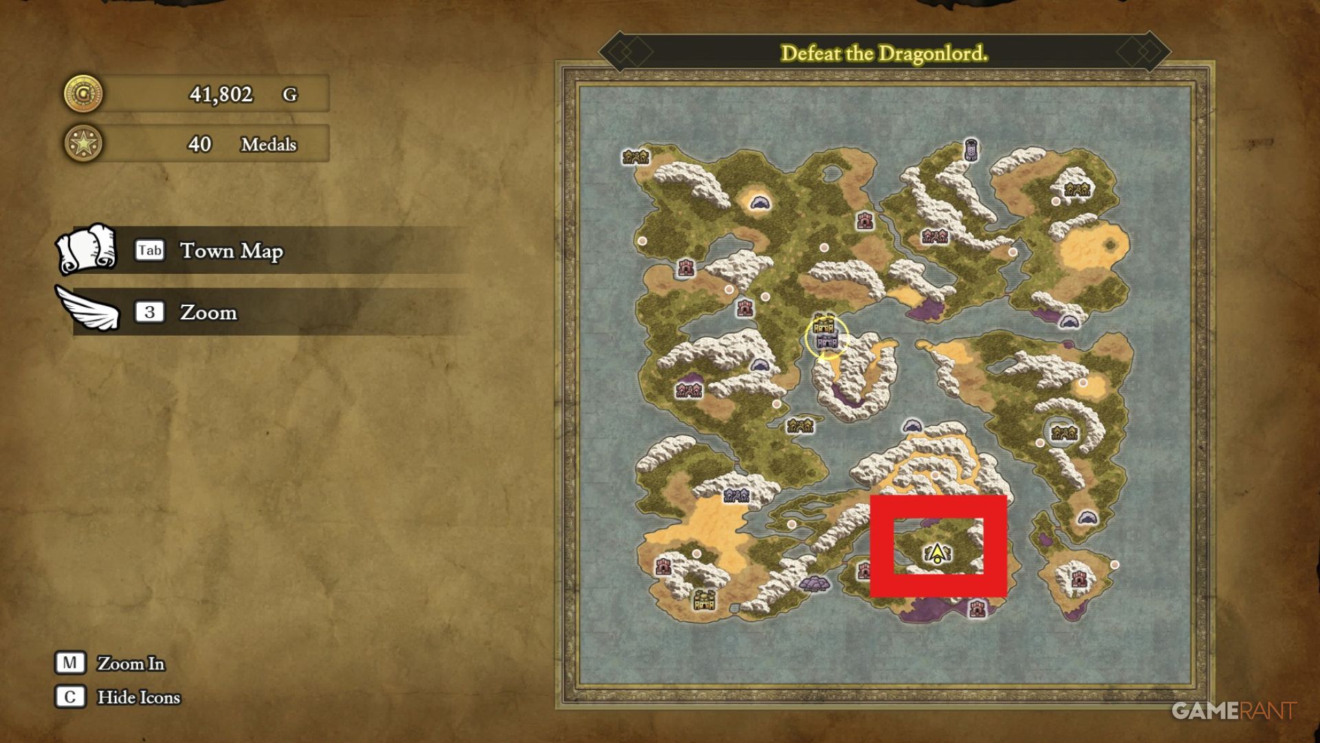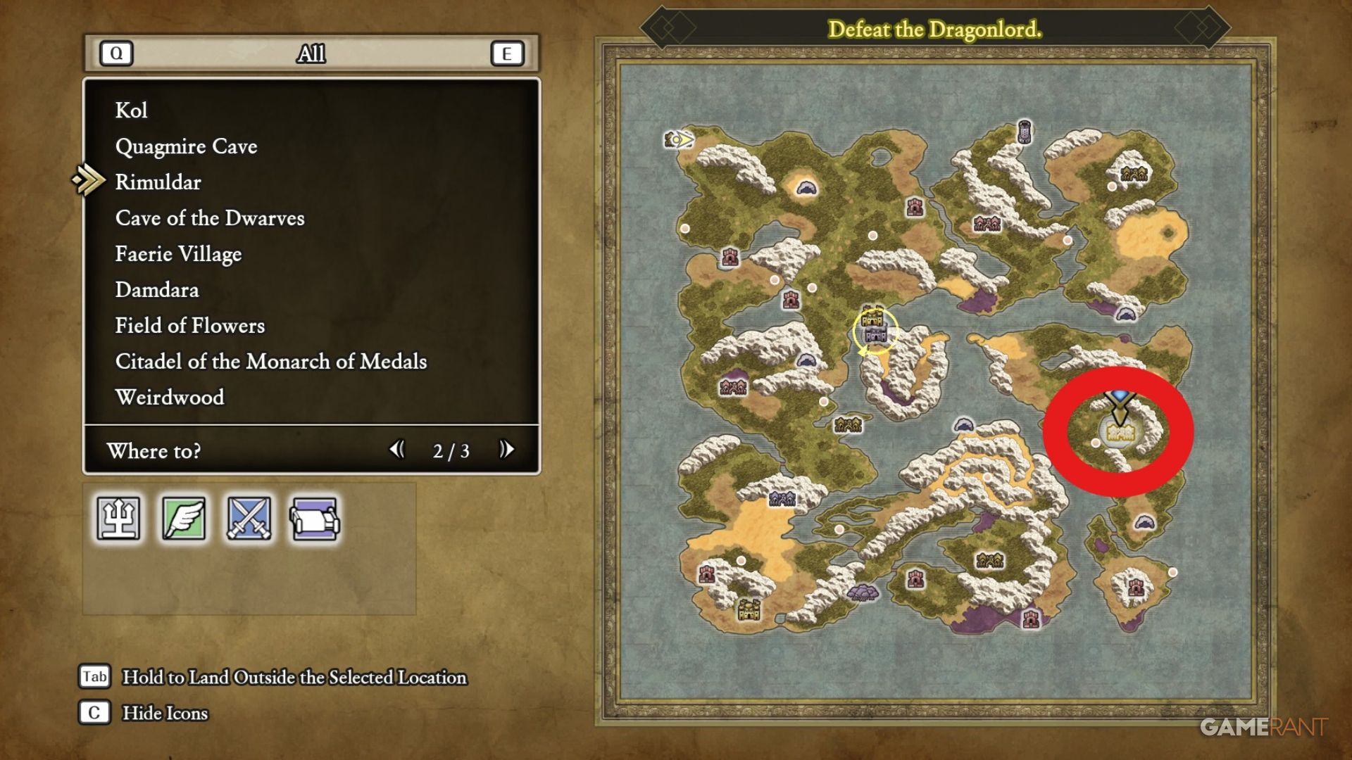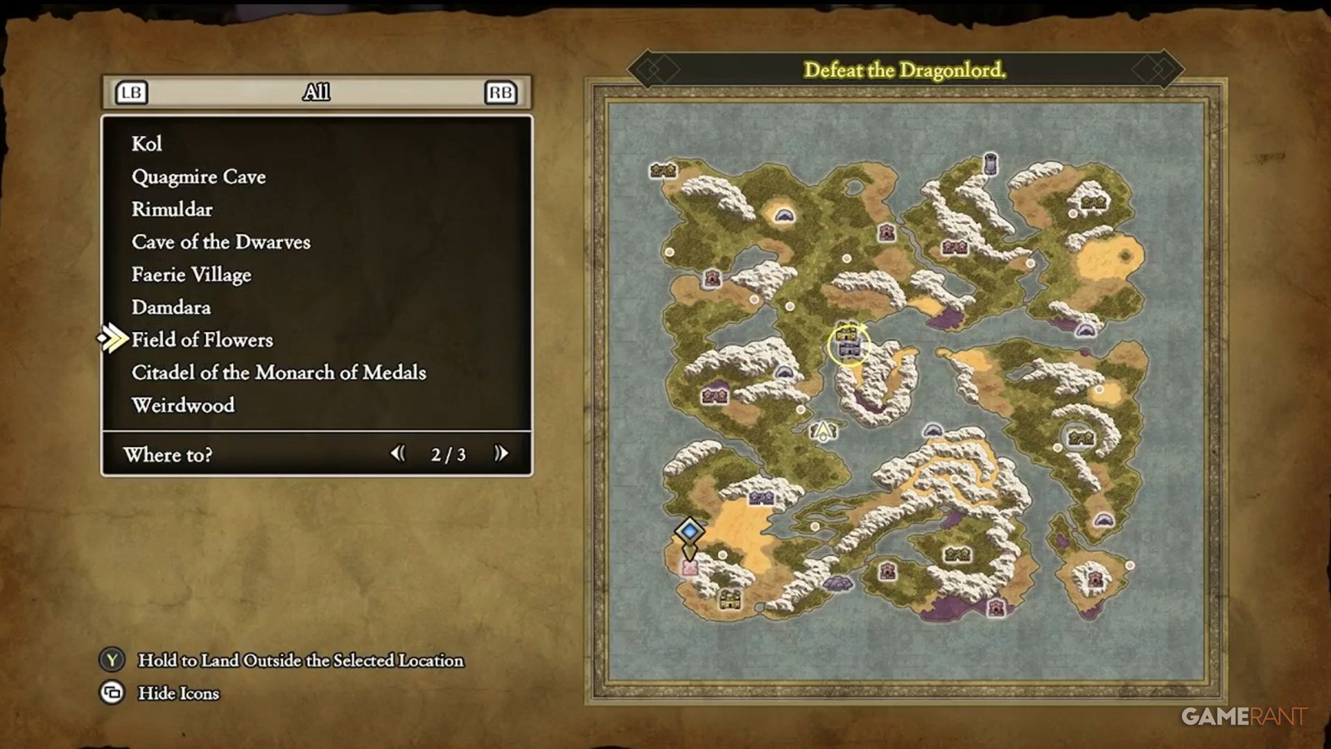 To complete Zalen’s quest and earn the ‘A New Song of Erdrick’ trophy, you’ll need to go to Rimuldar. It’s located on the eastern side of the map, just north of the Cave of the Dwarves.